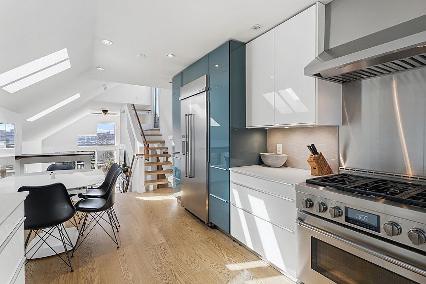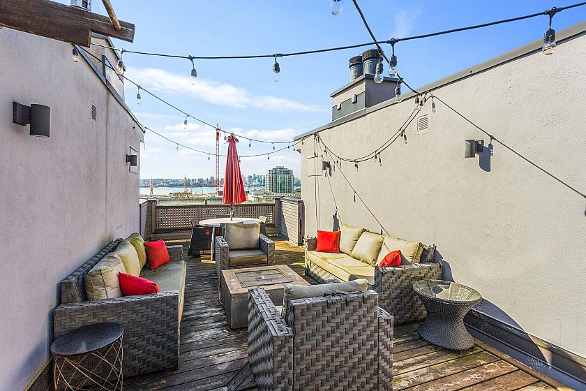 Welcome to one of lower Lonsdale's most unique homes, set on a highly sought after street. This beautifully renovated 2 bed, 2 bath townhome offers 1,331 sq ft. of stylish living. Enjoy 13' vaulted ceilings in the living room with wine fridge, large kitchen with high end appliances. Ocean views from both the living room and the bedroom. Nearly 400 sq ft. private rooftop patio offering breathtaking 180 degree views of the Ocean, City. and mountains, perfect for entertaining and relaxing. This boutique, self managed complex consits of only 4 units, providing a sense of exclusivity and community. Includes two side by side parking stalls and an extra large storage unit. This exeptional property offers a rare opportunity to own something truly special in the heart of Lower Lonsdale