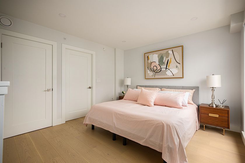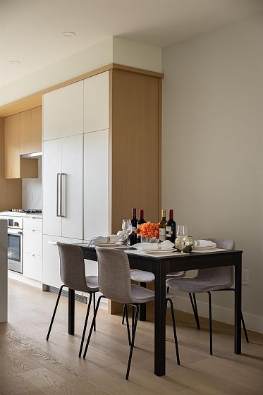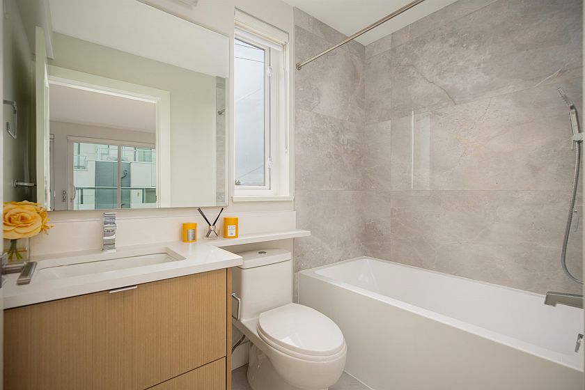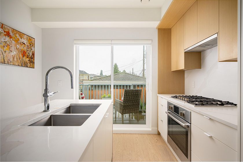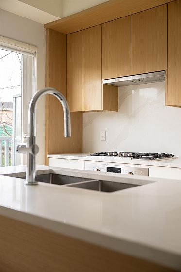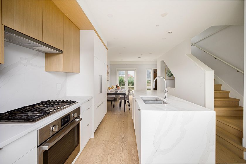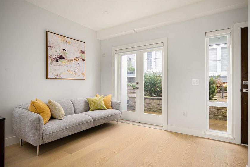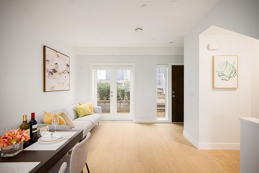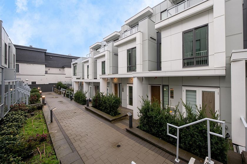 Courtyard-facing 3 Bedroom + Den + Flex townhome in a quiet setting. This air-conditioned unit faces a quiet inner courtyard and features a bright main level with 9' ceilings and a functional open-concept layout. The modern kitchen includes high-end Bosch appliances and polished quartz countertops, complemented by wide plank hardwood flooring and elegant window coverings throughout. Located in a highly desirable Vancouver West neighbourhood, within the Magee Secondary and Dr. R.E.McKechnie Elementary catchment, and just minutes to shopping, cafes, parks, and daily amenities-ideal for families. Open House: Apr. 26 (Sun) 2-4pm.