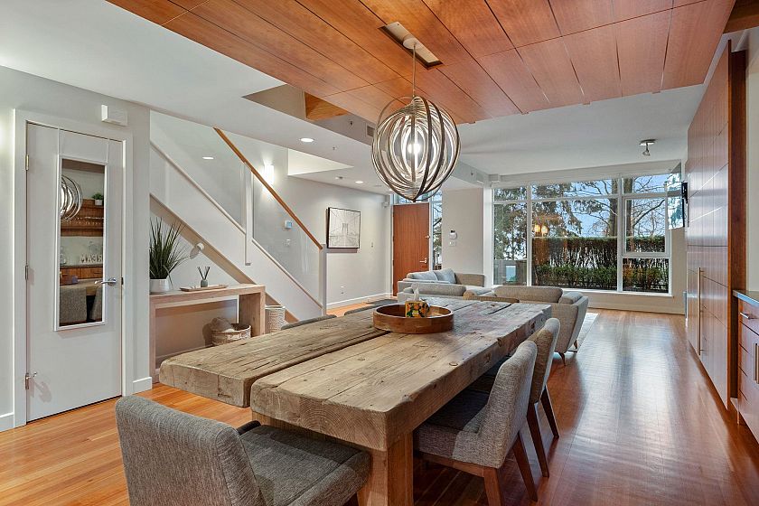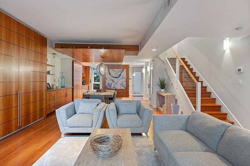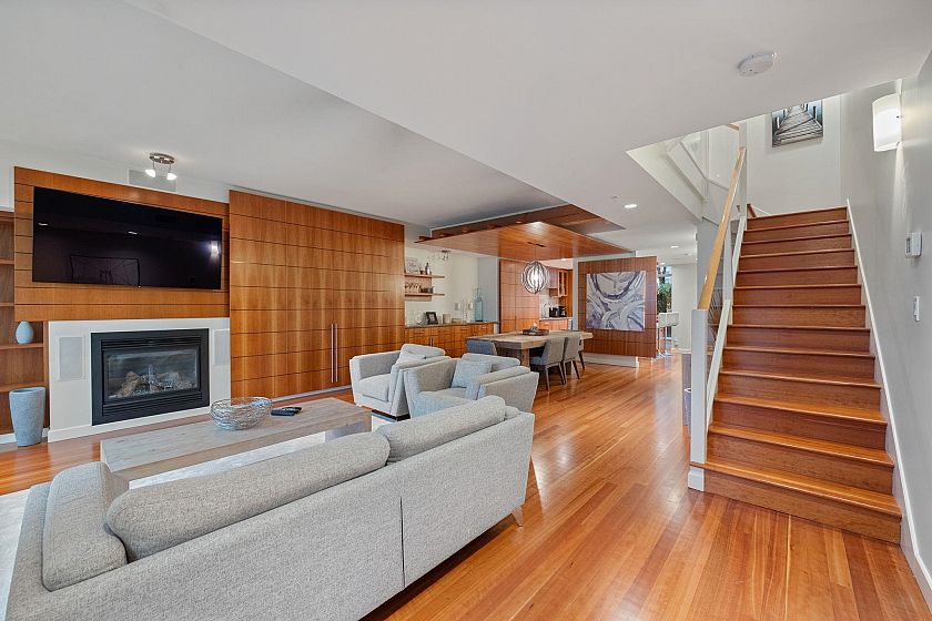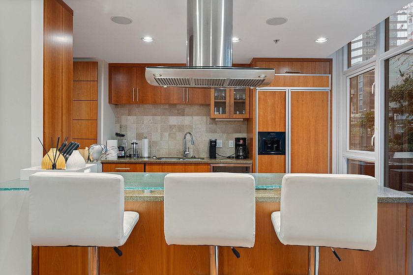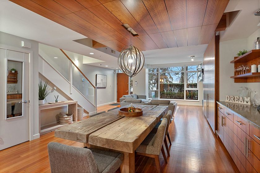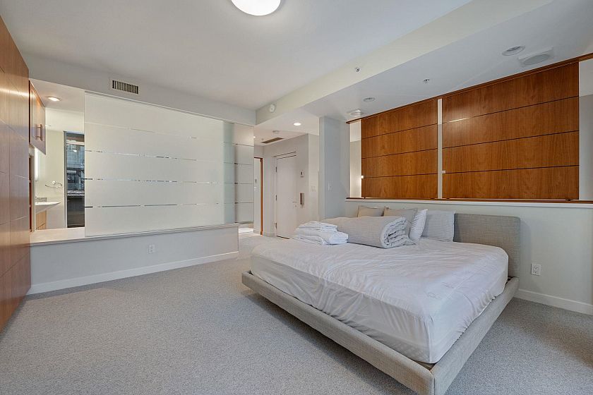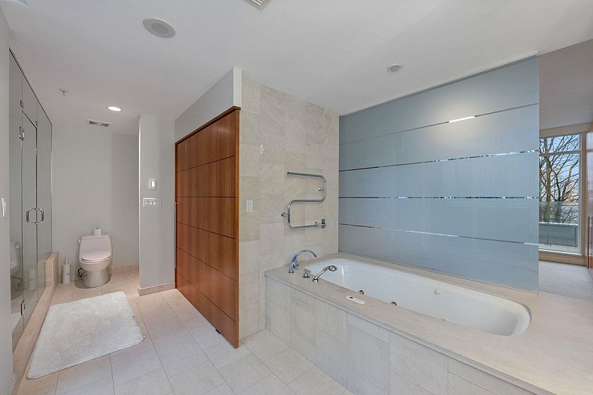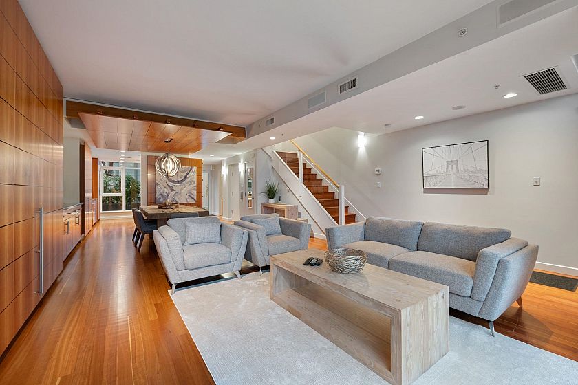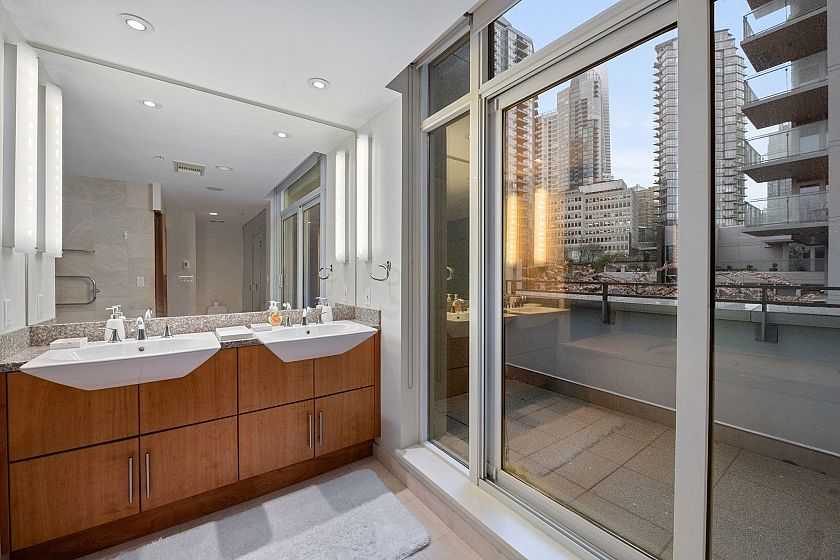 CALLISTO Waterfront townhome in Coal Harbour. Stanley Park & ocean views, located at Harbour Green Park. Interior by CCBG Architects with incredible extensive millwork. 3 bedrooms/2.5 bath on three levels, 2,457 SF. Main level 941 SF : Upper floor: two bedrooms plus office and 122 SF balcony. Top floor: 727 SF primary bedroom suite w/ 55 SF balcony. A/C Concrete & private in-suite elevator, two lge ocean view patios & 3 balconies.. Street level access. 533 SF of outdoor space. Two car private garage. Resort Amenities include: 24 hour concierge, pool, steam rm, gym & media rm. Steps from Stanley Park, Urban Fare, Coal Harbor Marina & Convention Centre. Building design by James Hancock. 2 pets permitted. Walk Score 95 -Transit score 100- Bike score 84. Digital Brochure Available