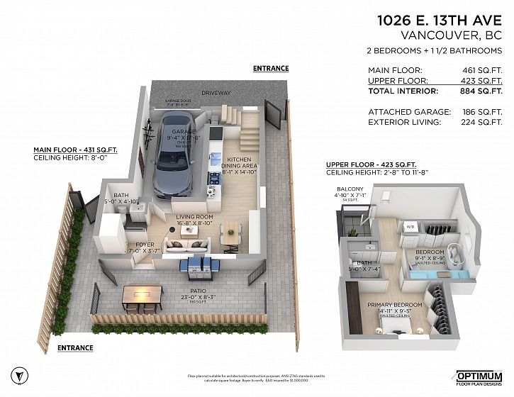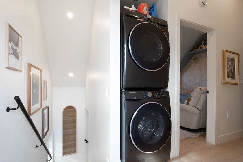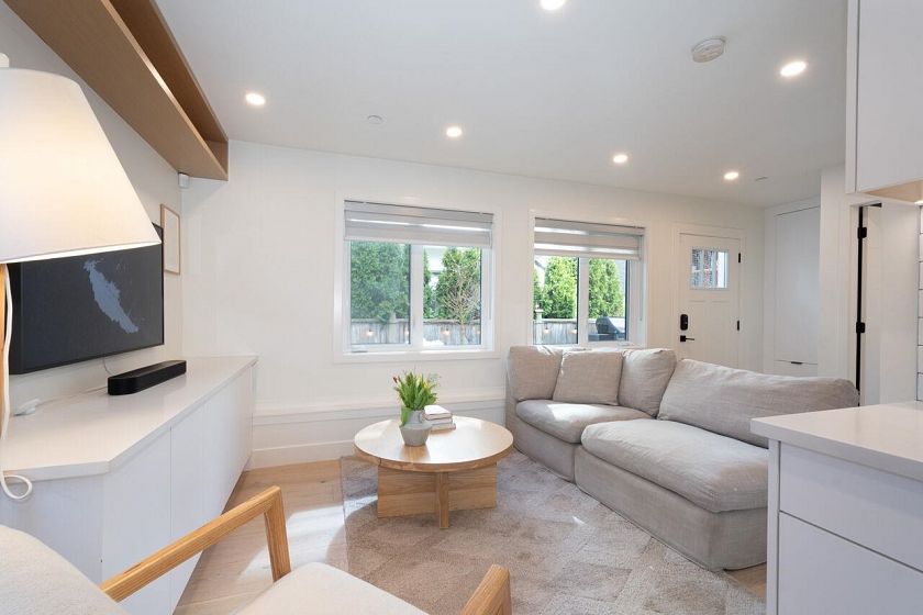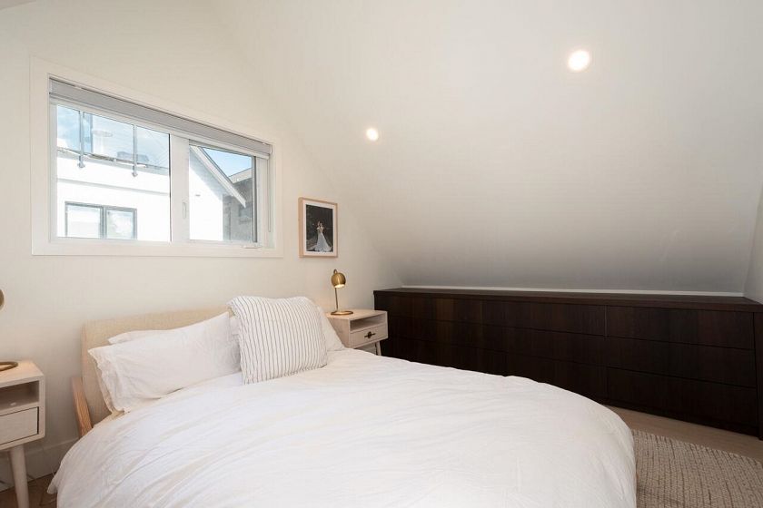 Exquisitely crafted 2 bed, 2 bath DETACHED COACH HOUSE in the heart of coveted Mount Pleasant, set on a quiet, tree-lined street. This refined residence showcases radiant in-floor heating, wide plank hardwood floors, and a designer kitchen featuring premium Fisher & Paykel appliances including a gas range. The upper level offers two beautifully appointed bedrooms, including a serene primary with custom built-ins, plus a second bedroom with bespoke millwork. Enjoy the convenience of upper floor laundry and a sunlit southeast-facing balcony. The private, fully fenced yard is ideal for entertaining or pets. Complete with your own attached garage. A rare opportunity to own a fully detached home with no monthly strata fees, just shared annual insurance. Steps to vibrant shops, cafes, and parks.