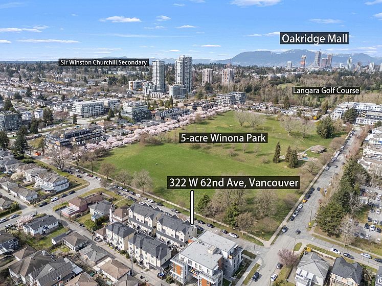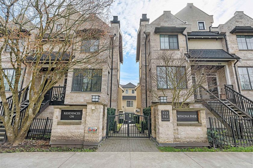 RARE high-end TH by award winning architect. Directly across from the 5-acre Winona Park provides for A Tranquil, Serene Environment. This special CORNER residence has views of Winona Park on ALL three levels. Step inside to an elegant marble mosaic entrance that flows to a bright airy kitchen and living room. Highlighted by contemporary white quartz countertops, shaker cabinetry and high-end appliances, this is westside living at its finest. 3 HOUSE-SIZE bedrooms EACH with spa-inspire ensuite bathroom and generous walk-in closets w/ windows await on the upper levels of this home. This AIR-CONDITIONED home comes with 1 extra large storage and 2 secure parking space with lots of FREE street parking, Walking distance to Marine Gateway shopping and skytrain, Churchill Secondary catchment.