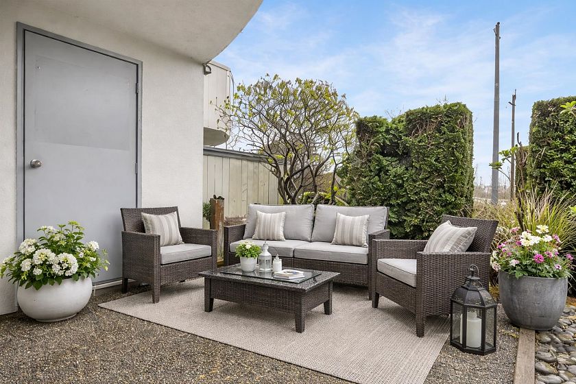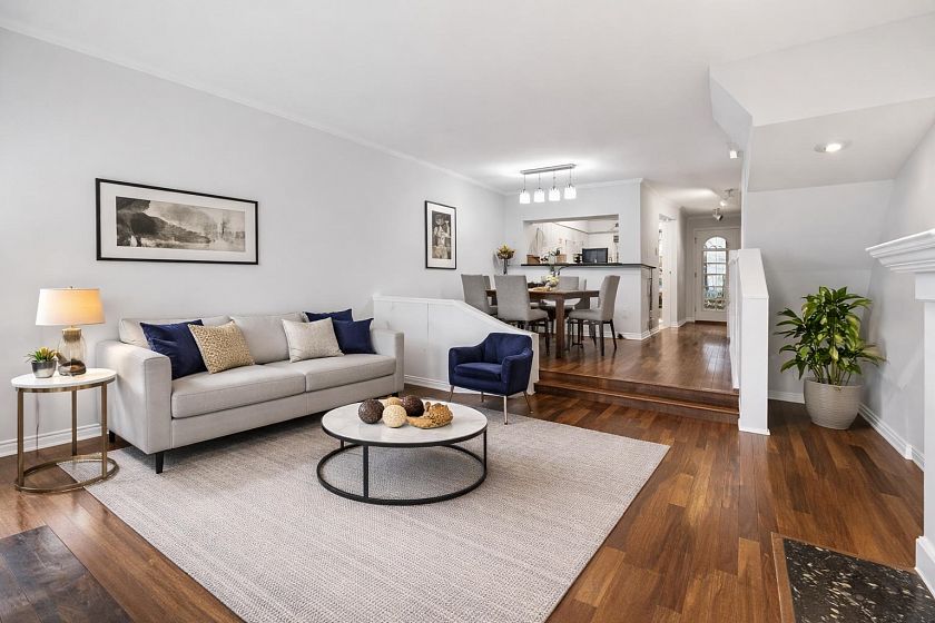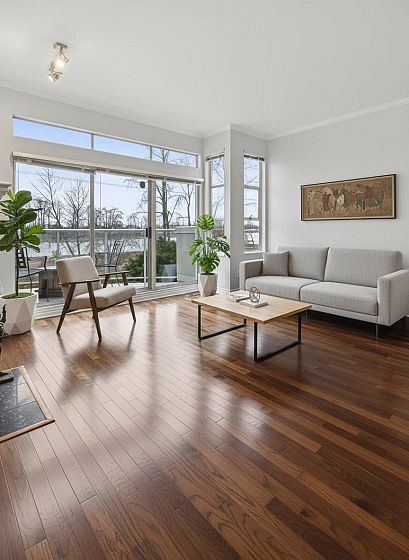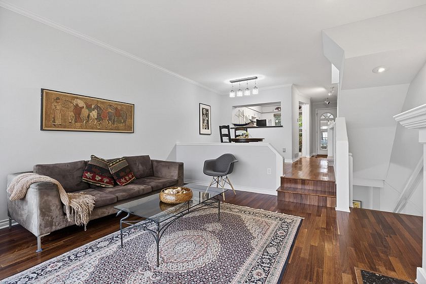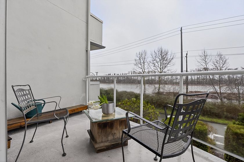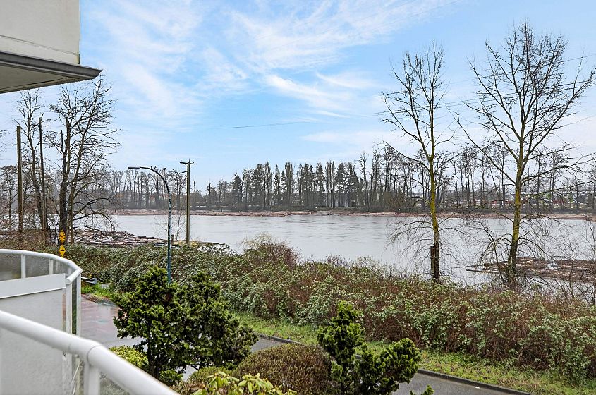 Rarely Available Unobstructed Waterfront Townhome w/Sweeping Views of the Fraser River. This is a Boutique 7-unit strata. Hardwood floors on the main, Brand New Berber carpeting throughout & Fresh paint top to bottom. The main floor offers a patio off the kitchen for bar-b-ques Plus a deck facing the River from the living room. The Master bedroom also has a Breathtaking deck with Stunning River Views all the way to Richmond. The Sunsets are Exquisite! Top floor offers High vaulted ceilings. There are 3 generous bedrooms, 2.5 baths, a utility room like a house, & a Huge indoor storage. The downstairs Bonus room or Bedroom has a Walk out patio for garden filled Afternoon Relaxation. Enjoy the River District Vibe Offering all the Restaurants & Services. This home is Special!