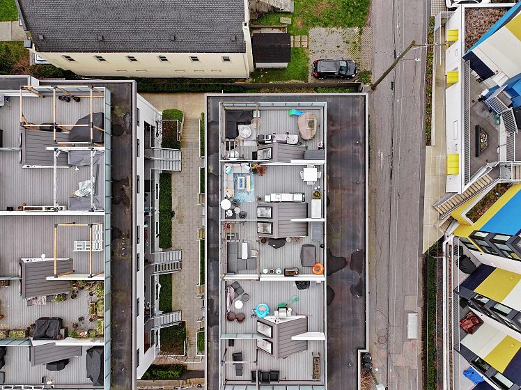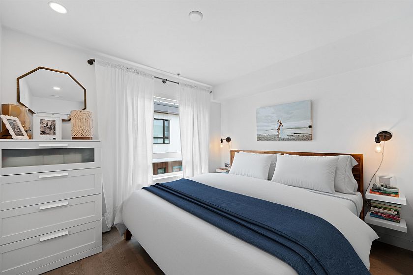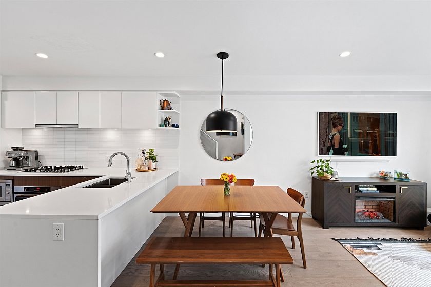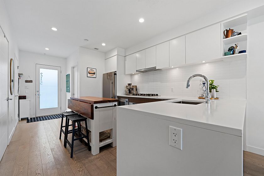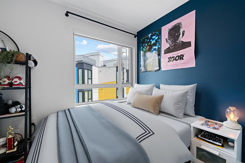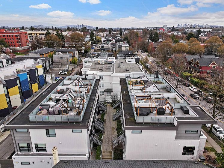 Calling all PATIO LOVERS and outdoor kitchen enthusiasts! Welcome to ARNE, a boutique townhouse in the heart of Mount Pleasant, tucked on the QUIET SIDE of the complex w/ inner courtyard access. This 3 Bed+ Flex, 2.5 Bath home features a Scandinave vibe w/ oak style flooring & a stylish kitchen with white & walnut cabinetry, stone counters, stainless appliances, & a 5-burner gas range w/ floating island. Upstairs offers 3 bedrooms on one level, including a spacious primary with walk-through closet & ensuite. The showstopper is the private rooftop deck with gas hookup and outdoor kitchen (including a sink), perfect for BBQs, sunset drinks, and entertaining w/ stunning city & mountain views. EV parking + large storage included. Pets & rentals allowed. Steps to the best of Main Street.