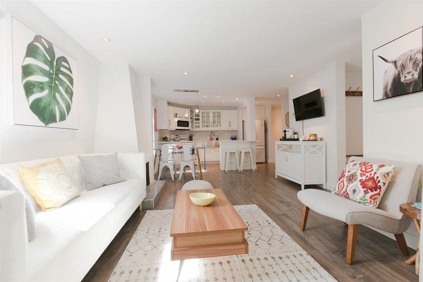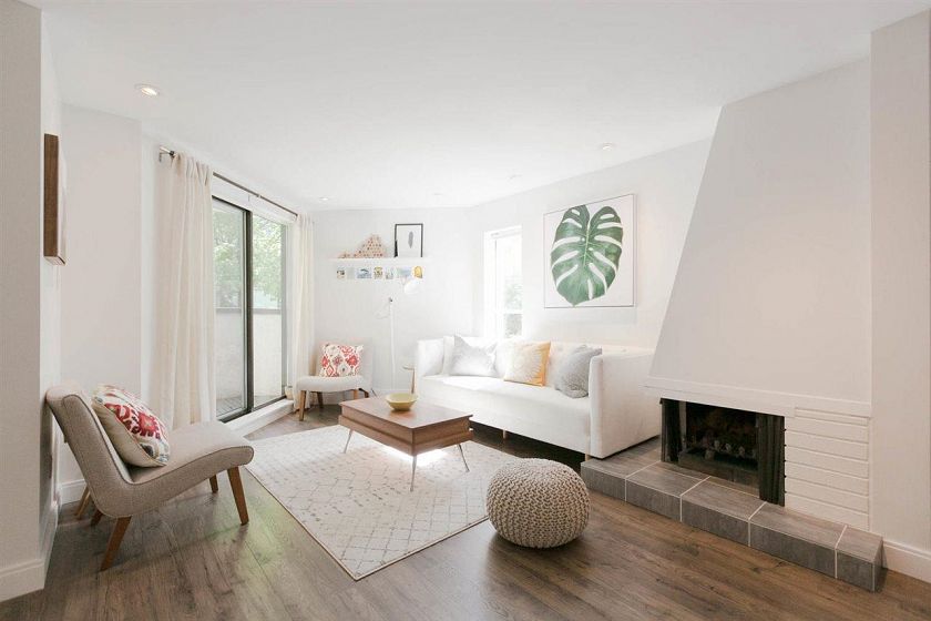 Enjoy the best of townhome living in the heart of the West End. Rarely available this bright NE corner open concept 2 bedroom, 2 bath 1172sqft home has been meticulously renovated and features the best of indoor outdoor living with private garden, terrace off the living room, private entry, in suite laundry, oversized bedrooms and an absolutely gorgeous mid century wood burning fireplace. Perfectly nestled on a quiet tree lined street, with Davie and Robson Streets at your doorstep, this sought after boutique building has even received offers from potential developers and enjoys a proactive strata. Pet and Rental friendly and includes 1 secured parking, plus ample street parking. Don't miss out on this gem. Open house Saturday , April 18th, 2-4pm.