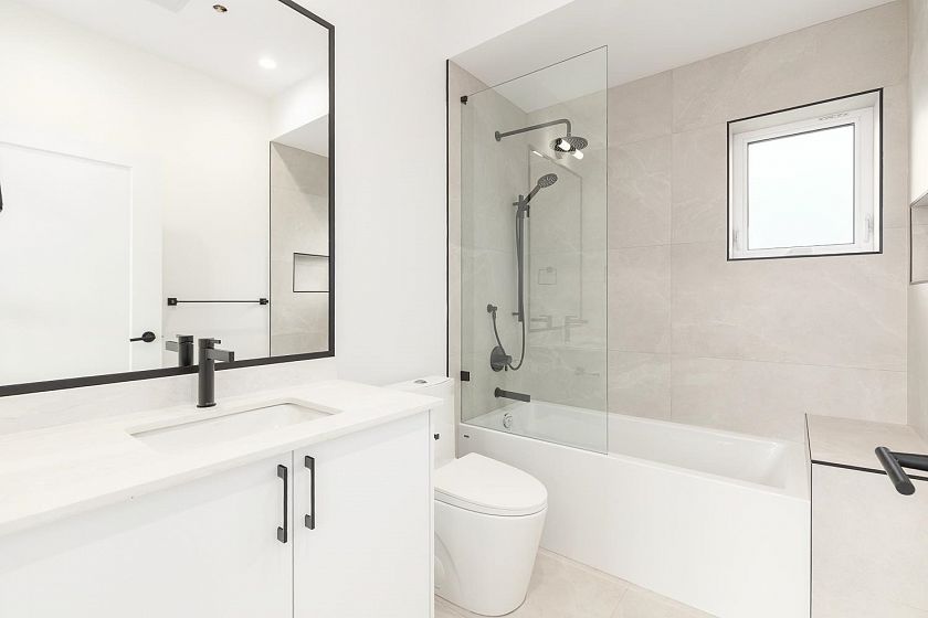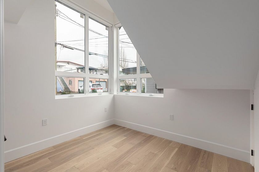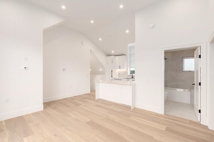 A fresh take on coach house living, this 3-bed/2-bath home offers modern design across 2 levels with an abundance of natural light throughout. Expansive windows brighten the interior, while the layout offers versatility. The entry level features a private bedroom with its own ensuite, ideal for guests or home office. Upstairs, you’ll find a well-appointed Fisher & Paykel kitchen with an island, sleek finishes, and an open living and dining area that connects to your private outdoor space through French sliding doors. This level also includes two bedrooms and a full bathroom. Complete with a heat pump for year-round heating and cooling, plus a dedicated parking pad. Ideally located near Fraser and Kingsway, you’re just steps to a wide range of cafes, restaurants, shops & everyday amenities.