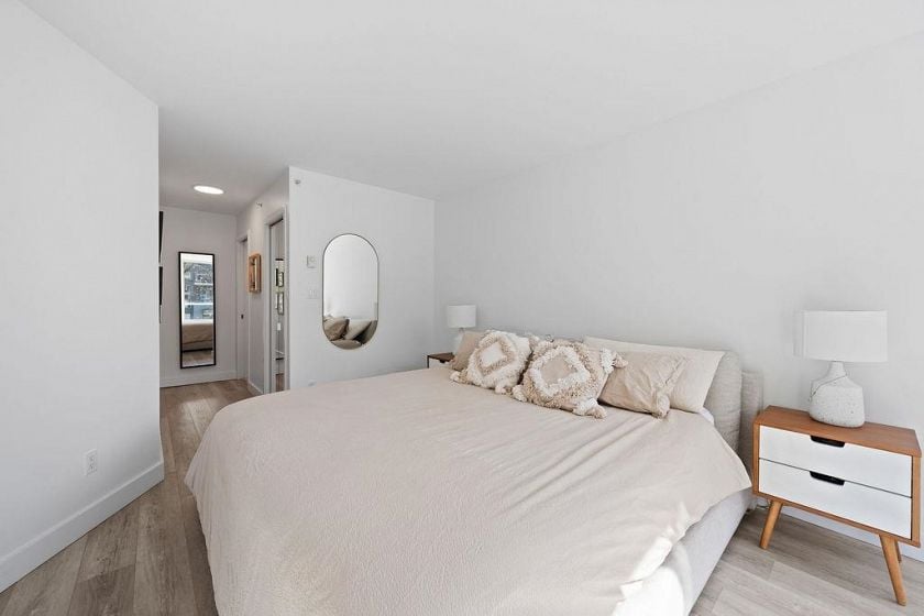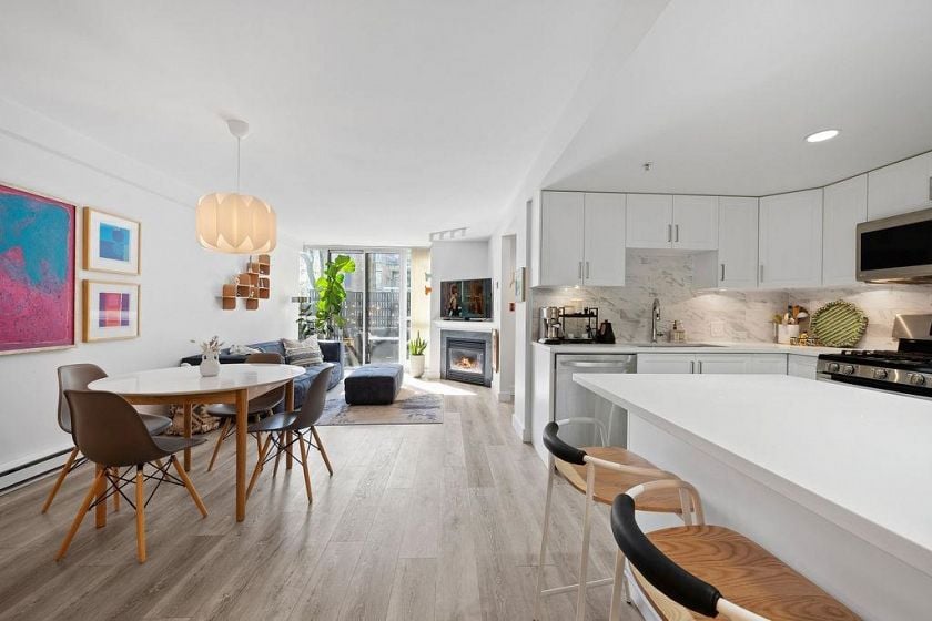 Bright and spacious, substantially renovated 2-bed, 2-bath concrete townhome at Modena of Portico in sought-after Fairview. This unique two-level home offers nearly 1,200 sq ft with generous principal rooms and seamless indoor-outdoor living to a private south-facing patio. Thoughtfully updated throughout with quality finishings, featuring a well-appointed kitchen, defined dining area, and comfortable living space. Ask for full renovation list! Upstairs includes two bedrooms, including a primary with walk-in closet. Complete with TWO parking stalls and an oversized storage locker. Well-managed building with excellent amenities including gym, steam room, sauna, and workshop. Walk to Granville Island, Kits Beach, South Granville shops, the seawall, and the upcoming Broadway SkyTrain.