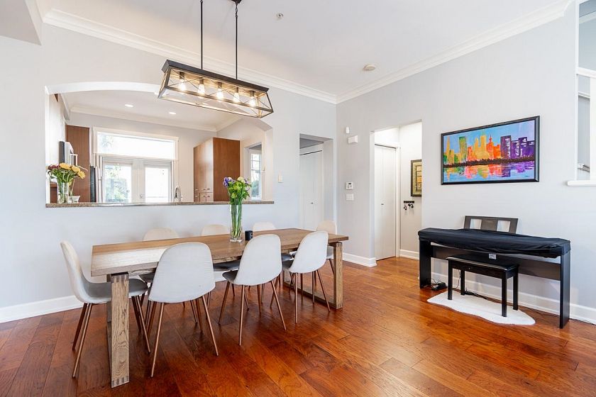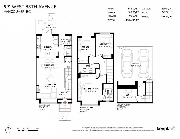Welcome to this beautifully maintained 3 bed/3 bath + den townhome in the highly sought-after Hamlin Mews; a well-run, carefully managed strata where homes rarely come available. What sets this home apart is its notably wider layout, giving it the spacious, comfortable feel of a detached home. Spread across three levels, the home features 10' ceilings in the living room, gas FP, a kitchen w/ gas stove, ample counter & cupboard space & a private over 100 sq ft patio. Upstairs, three bedrooms with 9' ceilings, new hardwood flooring & fresh paint throughout. Across from Van Dusen Botanical Garden. Vancouver College, École Secondaire Jules-Verne, & École Rose-Des-Vents a short walk away. Includes an attached PRIVATE & secure side-by-side double-car garage; Call for your private appointment.