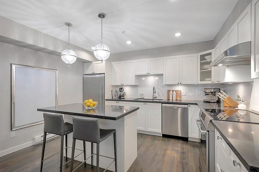 Discover this stunning 3-bedroom + den, 3-bathroom townhome in sought-after Cambie Village. Thoughtfully updated featuring a bright open-concept main level with seamless living, dining, and kitchen space—ideal for everyday living and entertaining. The beautifully renovated gourmet kitchen, wood floors throughout and a powder room completes the main level. The second level offers a spacious primary bedroom, with renovated ensuite, and a spacious den area with custom built-ins (perfectly suited for a home office, library or media area). Upstairs includes two additional bedrooms (one with balcony), a full bath, and laundry. Air conditioning in all bedrooms ensures comfort. Approved upcoming exterior upgrade project add future value. Close to VGH, top schools, parks and Cambie Village.