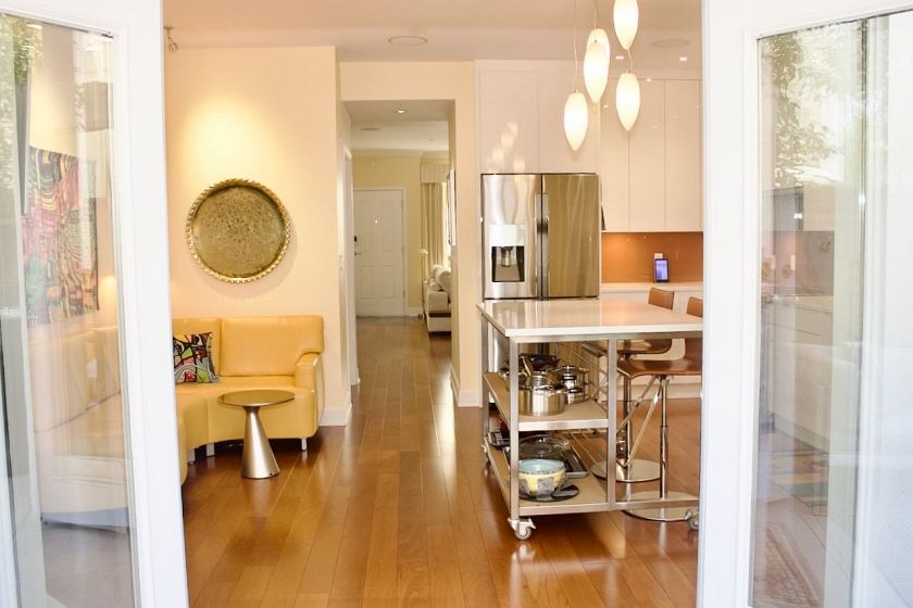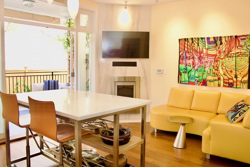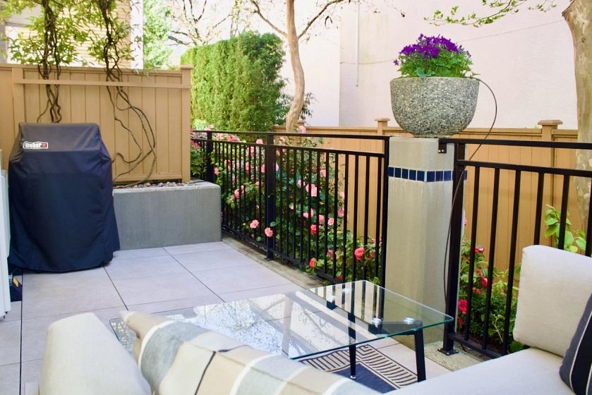 Welcome to Stanley Park Mews, a boutique townhome complex only steps to Stanley Park. This West of Denman residence has been tastefully renovated and shows very well. Other highlights include air conditioning, in suite laundry, a main floor patio and a balcony. Both bedrooms have ensuite bathrooms with heated floors. The property is well maintained and the exceptional location is convenient to shopping, dining, recreation and other services. Single attached garage within the garage plus an additional garage parking spot. Your pets are welcome. No presentation of offers until Apr 21st at 10 am. Sneak peak Thurs 16th 5-6, and open houses Sat 18th and Sun 19th 2-4. Also easy to show by appointment with reasonable notice. Strata Plan shows 1430 sq ft. Professionally measured at 1415 sq ft.