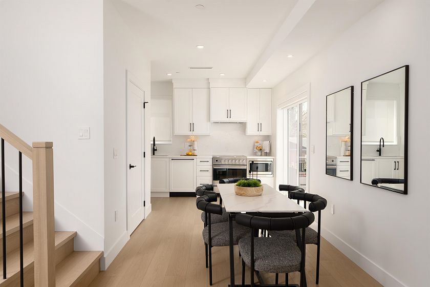 Welcome to Norquay Premiere, a limited collection of contemporary townhomes designed for East Van. This 5BR + 4.5 bath home incl. a lock-off suite - ideal as mortgage helper or multi-generational living. Thoughtfully laid-out w/ excellent flow, incl. 3 bedrooms on one level and 3 outdoor spaces, highlighted by a sunny top-floor balcony. The main living area features built-in media unit and modern kitchen with Fisher Paykel appliances, quartz counters & shaker cabinets. Equipped w/ heat pump for heat/AC, dedicated HWT & full-sz laundry. Smart security, secure bike storage & 1 parking included. Centrally located near parks, schools & Kingsway amenities; 9-min walk to 29th Ave SkyTrain & 20 mins to DT or YVR. Catchments: J. Norquay Elem. & Windermere Sec.