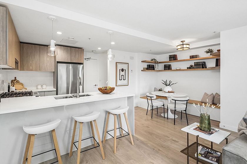 Welcome to Crest by Adera. This two-level concrete townhome offers 2 bedrooms, 2.5 bathrooms, air conditioning, and two private patios. LEED Gold–certified and energy-efficient building. Enjoy amenities including a fitness room, lounge, and secure parking and storage locker. Quietly located on a cul-de-sac just steps to Central Lonsdale shops, cafés, Victoria Park, and a nearby dog park. Open house, Sat, Apr 18, 12-2pm and Sun, Apr 19, 2-4pm.