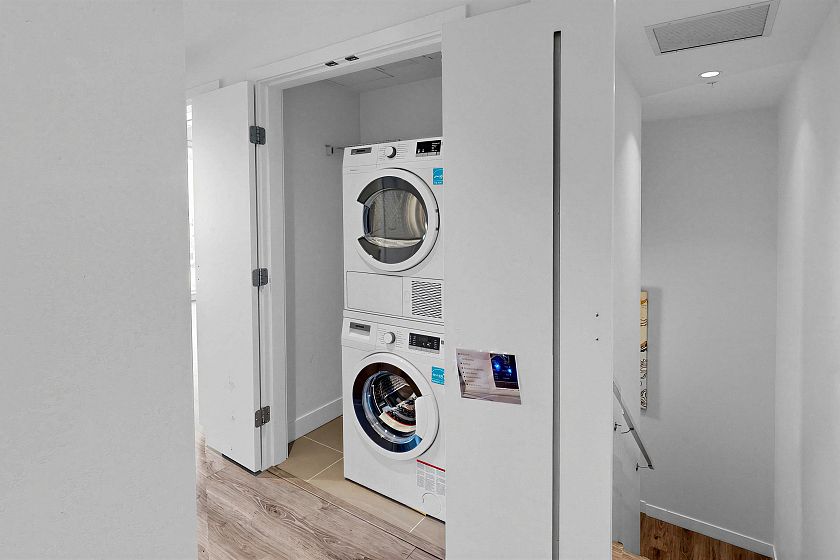 Rarely Available 2 Bedrooms + den/flex , 2 1/2 Bathrooms 2 Level Townhome at Fraser Commons .High ceiling in the main floor ,open floor plan , bright and east facing patio .Centralized air conditioning , Bosch appliance package with built-in custom panel refrigerator, integrated dishwasher ,stainless steel oven with gas cooktop .Exclusive amenities : Roof top terrace with garden, daycare with outdoor play area , exercise room ,multipurpose room with shared kitchen for entertaining . 2 underground parking + 1 storage locker . All photos and measurements by REV Studio ,and approximate only , to be verified by the buyer /buyer's agent deem to important. Show and sell .