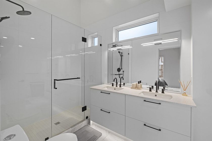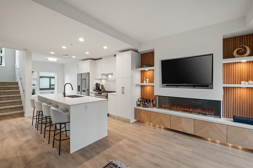 Modern living meets everyday convenience at The Trails, located in the exciting and trendy Moodyville community. This (NO GST) townhome offers a highly functional 4-bedroom layout plus a bright den, providing flexible space for a home office, playroom, or guest area. The main living level is stunning and inviting, featuring upgraded custom millwork, radiant in-floor heat, and a beautiful contemporary kitchen with premium and very handy Smart Hub appliances. Large windows bring in abundant natural light and offer city and water views beyond. A standout feature is the elevated outdoor space, with private decks and patios, perfect for relaxing or entertaining. The home also includes TWO secured underground parking stalls with EV charging installed, along with a storage locker.