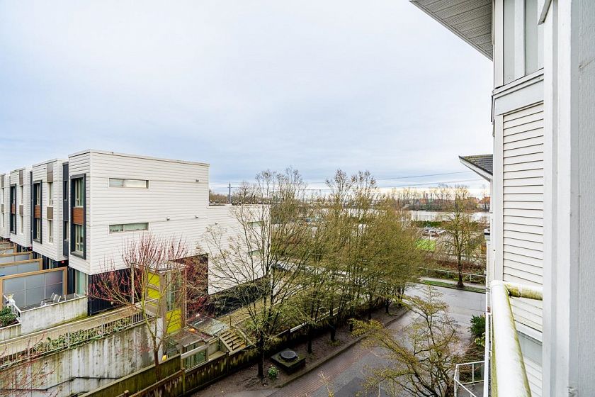 RIVERSIDE GARDENS 1-level townhome with a rare find, a Spectacular VIEW of the Fraser River! This bright 986 sq.ft. home offers 2 spacious bedrooms, 2 full bathrooms, and 9' ceilings throughout. Recently updated with brand-new laminate flooring, fresh paint, brand-new Modern Zebra Blinds, newer lighting, newer washer & dryer, and much more! Located in the desirable Fraserview waterfront neighbourhood, directly across from the park and just steps to tennis courts, playgrounds, scenic river walks, and restaurants. Enjoy the oversized private deck, perfect for BBQs and soaking in the sunshine with beautiful river views. Situated in a well-maintained building with proactive strata. Includes 1 secured parking stall and 1 storage locker. A must see!