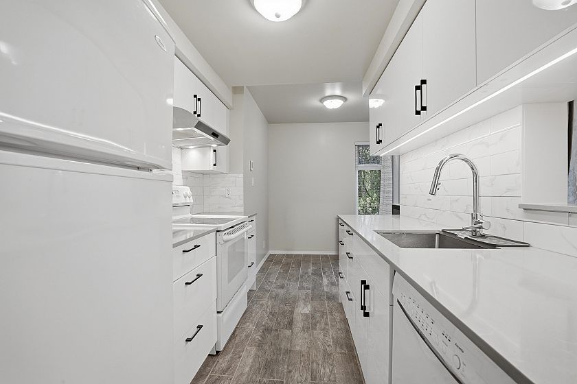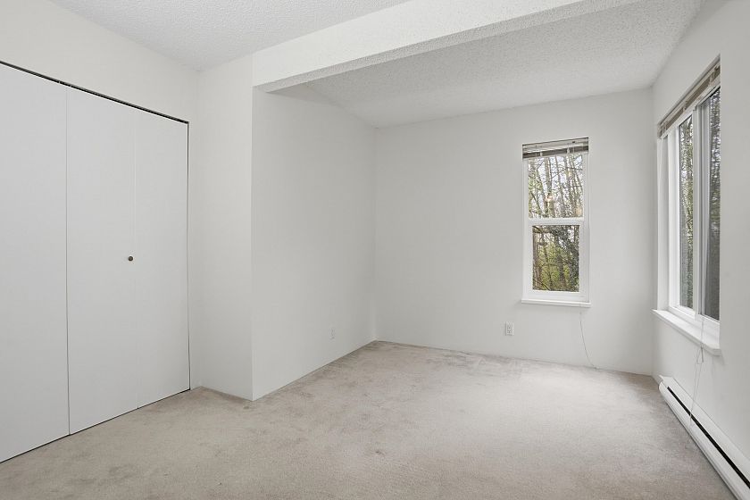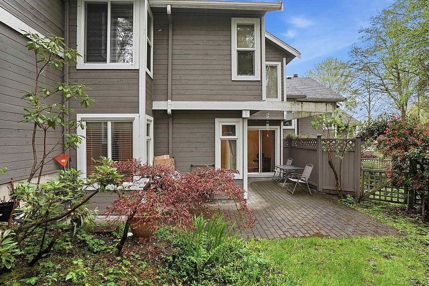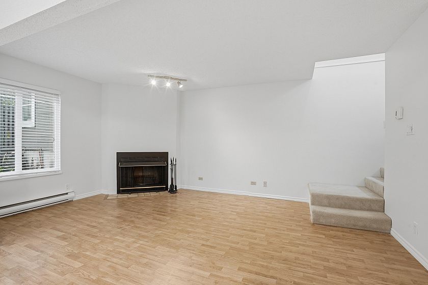A park-like setting you won’t want to leave. This exceptionally well-maintained 3-bedroom, 1.5-bath townhouse backs directly onto the park & features a fully fenced, private backyard. Updated kitchen w/ eating area offers ample storage & counter space, while the spacious living with real wood fireplace along with a dining room showcasing beautiful views of the yard & greenery beyond. Upstairs, the private primary bedroom & two additional bedrooms all overlook the park, complemented by full bathroom. Enjoy outdoor living with room for a patio, gardening, & sun-filled relaxation. Complete w/ two parking stalls & two external storage lockers, this home offers comfort, space and an unbeatable setting. Freshly painted and ready for you to move in. Prepaid 99 year lease.