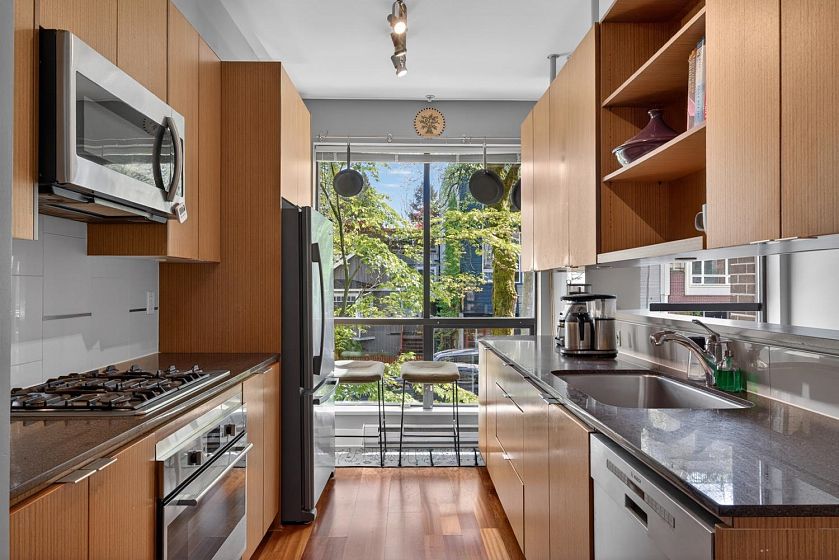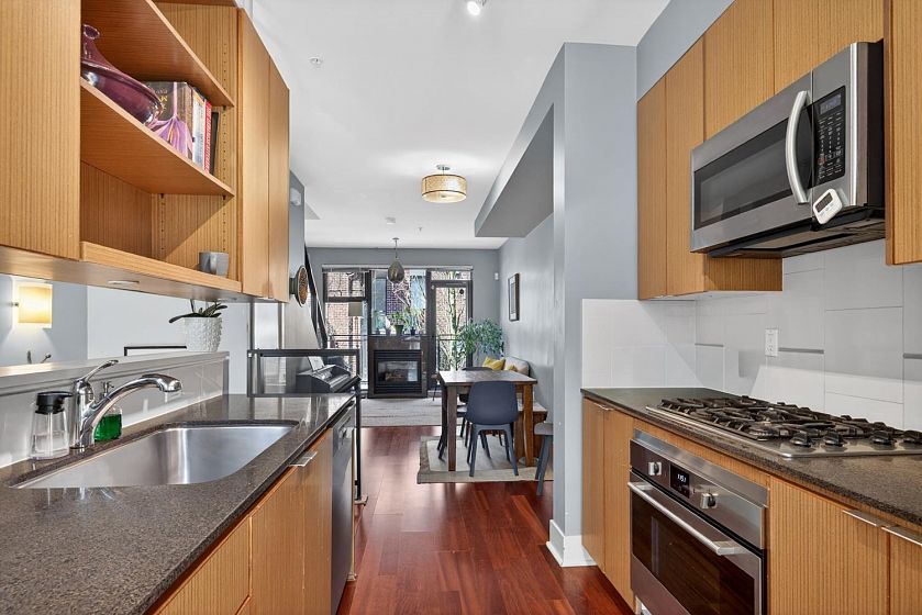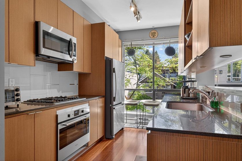 Welcome to life at Brix II—where you get the space you need and the neighbourhood you want. This bright 3-level, 3 bed/2 bath townhouse has room to spread out, with 9ft ceilings, warm maple floors, and an open main floor that makes everyday living easy. The kitchen’s got plenty of storage and flows nicely into a cozy living area with a gas fireplace—perfect for slow mornings or easy nights in. Upstairs offers flexible bedrooms for kids, guests, or a home office, while the top floor is your own retreat with a walk-in closet and private rooftop patio. Steps to Trout Lake, SkyTrain, great schools, and all the local spots. Comes with 2 parking and 1 storage locker.
