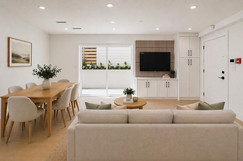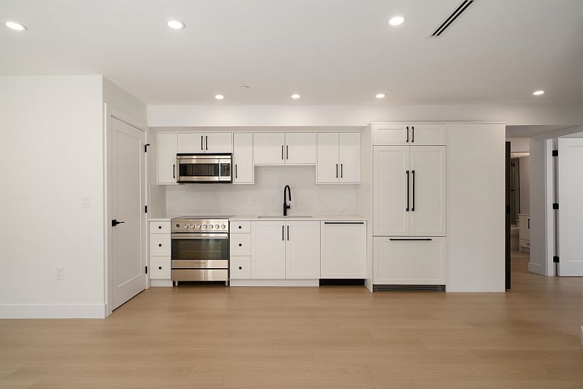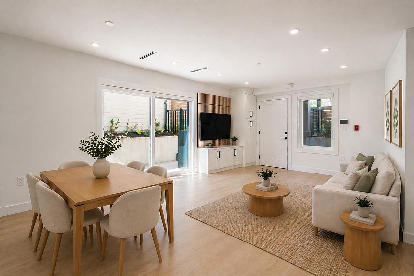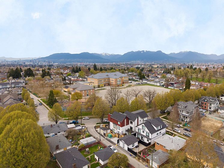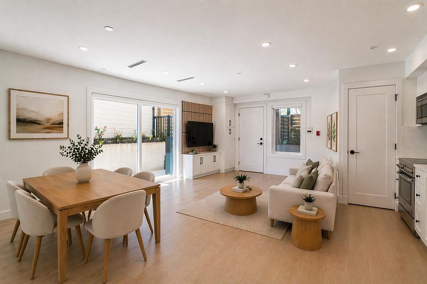 Welcome to Norquay Premiere, a limited collection of contemporary townhomes in East Van. This garden-level home is ideal for growing families or downsizers, featuring 3 bedrooms on one level and a wraparound outdoor space. The main living area offers an open-concept layout, built-in media unit, and modern kitchen with Fisher & Paykel appliances, quartz counters & shaker-style cabinetry. Equipped with heat pump heating & A/C, dedicated hot water tank & full-size laundry. Smart security system, secure bike storage & 1 parking included. Centrally located near parks, schools & Kingsway amenities; a 9-min walk to 29th Ave SkyTrain & 20 mins to Downtown or YVR. Catchments: John Norquay Elementary & Windermere Secondary.