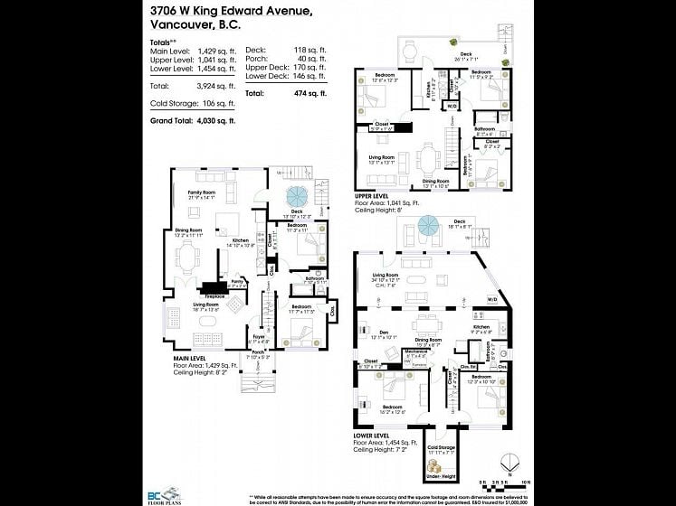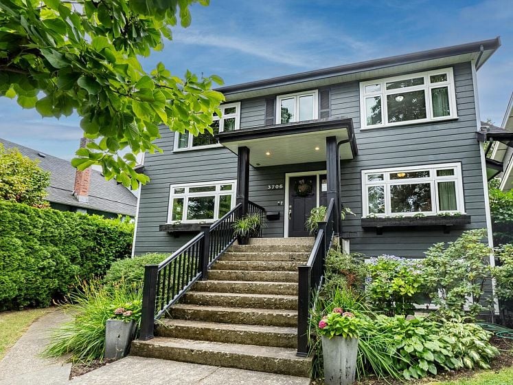 QUIET WEST OF DUNBAR. 3 suite rental property. Home extensively rebuilt & renovated. In 1984 the upper floor was rebuilt on permit. Current owner completed another $250,000 in renovations incl new exterior, windows, flooring, roof, fireplace, main & upper kitchens, main & upper baths, decks, built-in vacuum. Oversized double garage is EV ready. Lower floor is at ground level w/2 bdrms, a kitchen, and full bathroom. Main floor has 2 bdrms, a kitchen, and full bathroom. Upper floor was converted in the 1990s to a self-contained 3 bdrm suite that is a LEGAL SUITE for the life of the building. Current owner occupies the first two floors as a single family home. Potential rents: Up $4,500, Main $3,500, Down $2,500, Garage $500, Ttl $11,000/mo or $132,000/yr.