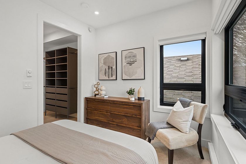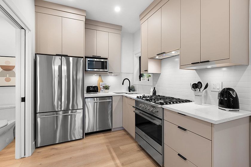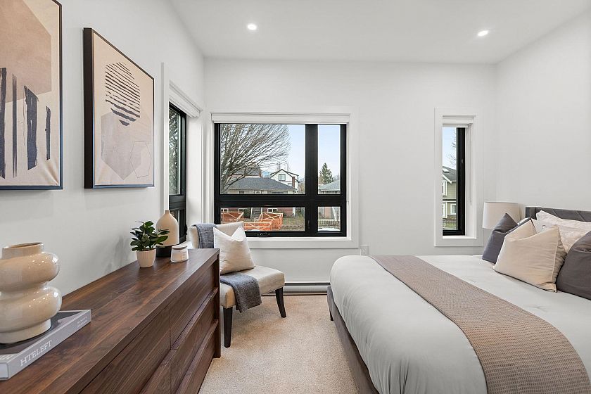 Located on a quiet, tree-lined street in Collingwood, this modern 3-bedroom, 2.5-bath triplex offers stylish living in a family-friendly East Vancouver neighbourhood. Thoughtfully designed with contemporary finishes, the open-concept layout features wide-plank laminate flooring, quartz countertops, LED lighting, and matte black fixtures throughout. The kitchen is equipped with Fisher & Paykel appliances for both function and style. Just steps from John Norquay Elementary and within easy walking distance to local shops, cafés, and restaurants. Added conveniences include a dedicated carport & EV charging. An ideal opportunity to enjoy comfort, convenience, and modern design in a vibrant community. Open House: Saturday, Mar 7th 11:30am-12:30pm