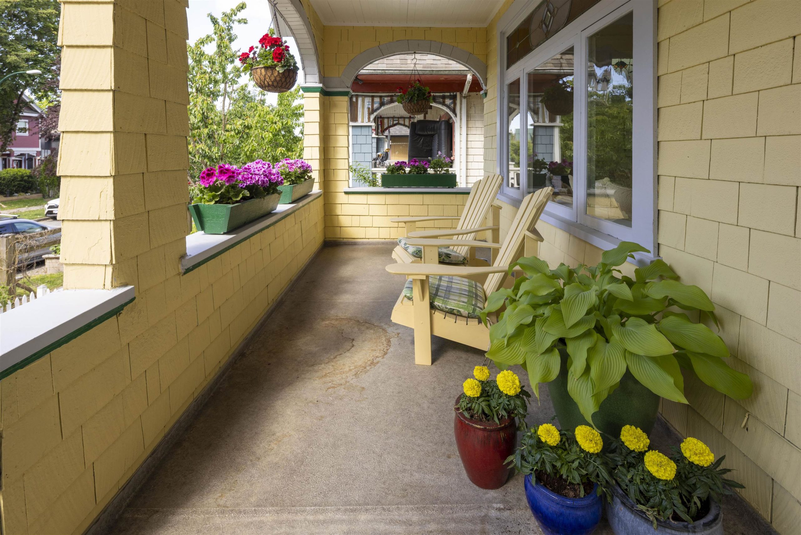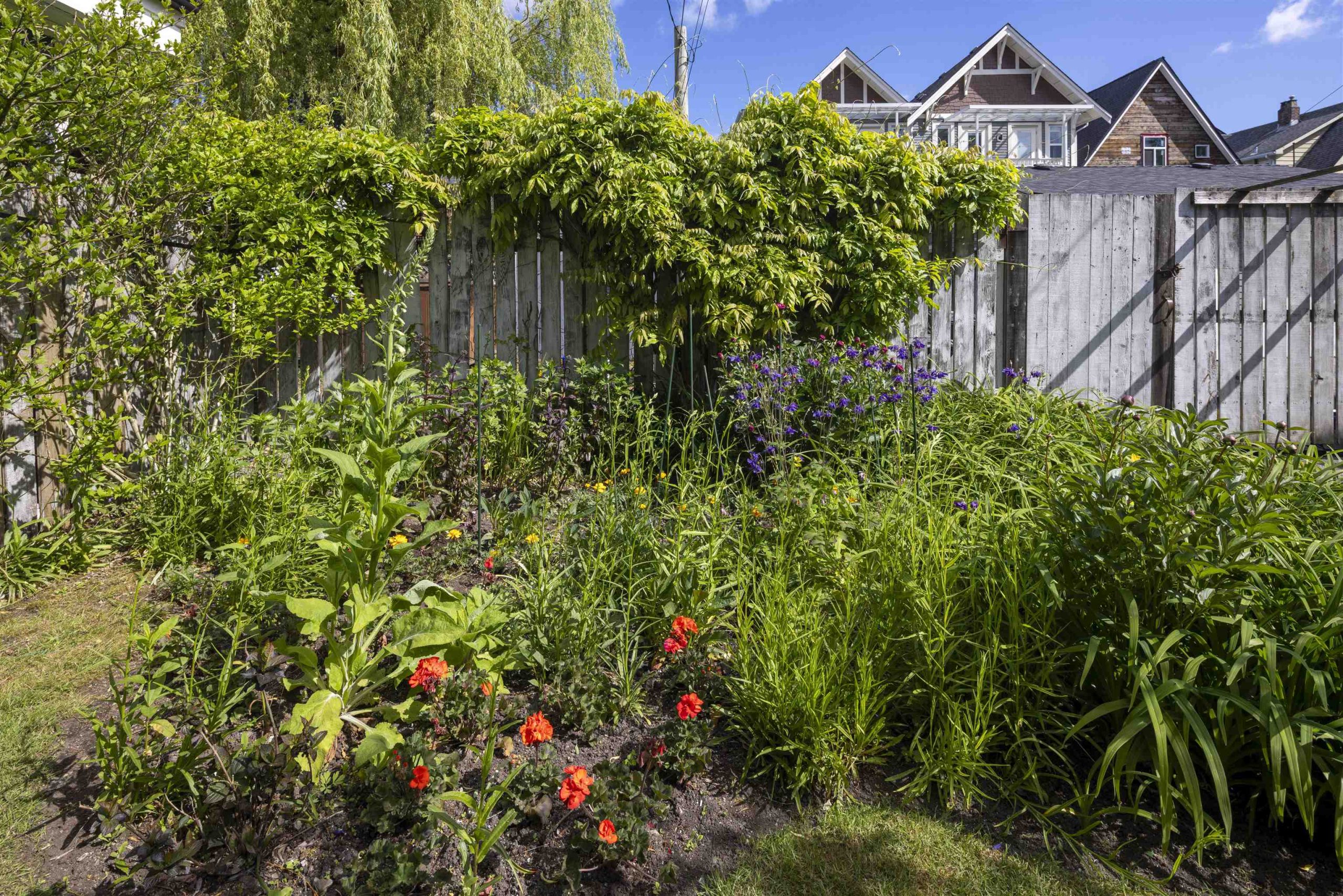 A lovingly restored Craftsman Home on a stunning cherry tree-lined street. White picket fence ushers you to the front door with the sweet aroma of lilies, through the beautifully manicured & mature gardens. Step inside this welcoming space, incredile thoughtful detail and care paid to this grand residence – stunning stained glass windows illuminate the main floor, vintage custom hardware, parquet hardwood floor, solid fir millwork, clawfoot tub and much more. 3 generous bds upstairs, with the primary overlooking trees & gardens. Updated 1+Den suite w/separate laundry & entry. NEW HotWaterTank 2024. Saving the best for last – PRIVATE GARDEN OASIS in the yard, surrounded by hummingbirds, peonies, wisteria. Many upgrades incl electrical, plumbing, furnace, ++.