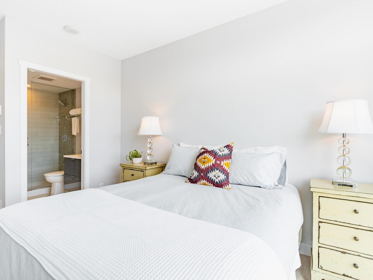 The one you have been waiting for! Like new 2 bed+den, 2 bath S/E corner suite at Kits 360. Incredible natural light from floor to ceilings windows + lovely open views. Features gorgeous open kitchen with huge island, high end Miele appliances, gas cooktop, wall oven & stone counters. Incredible layout, generous room sizes, spacious balcony, efficient den/flex room & separated bedrooms for privacy. Recent upgrades include new wide plank H/W floors, closet organizers & designer paint. Complete with 2 pkg, strg lker & lots of bike strg. This impeccable concrete building has gorgeous water features, a hotel-like lobby, 24 hr concierge, roof deck w/water views, fitness centre, media room & visitor pkg. Incredible location walking distance to everything. Easy to show.